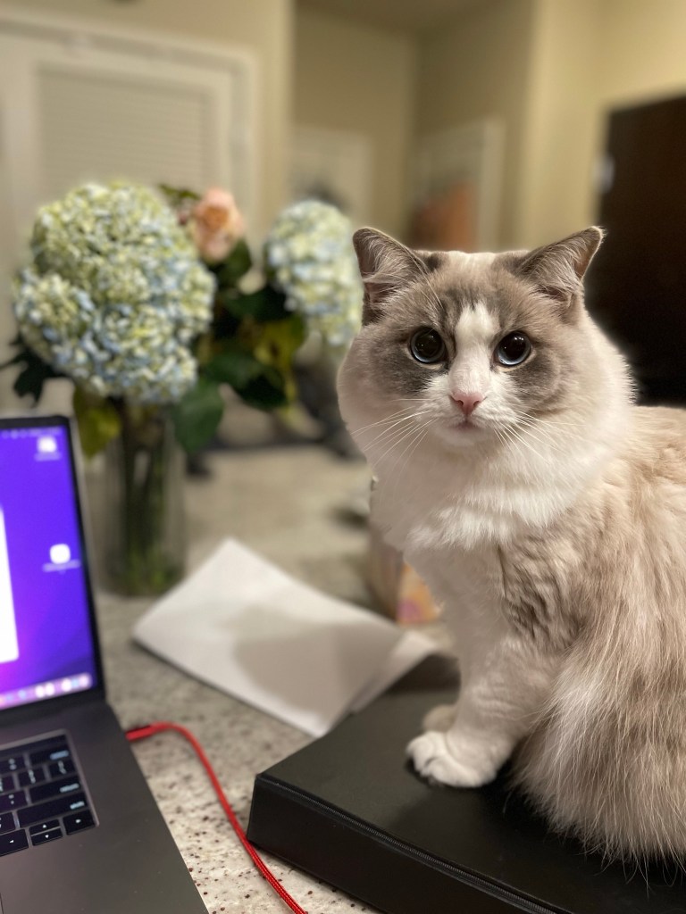 A pretty kitty to keep me company in the predawn quiet. Charmion is a little surprised but not upset to have a friend at 3:30 AM. She sits on my folders, walks over my keyboard, and butts her head against my hand as I work. My computer hums softly, the keys a little sticky from a late night pumping session gone awry. Gross, I know. Added to my mental list of to-dos: “clean computer.”